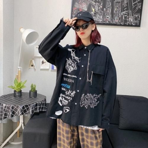チェーン装飾付き、裾切りっぱなしのダメージ加工がポイントです。