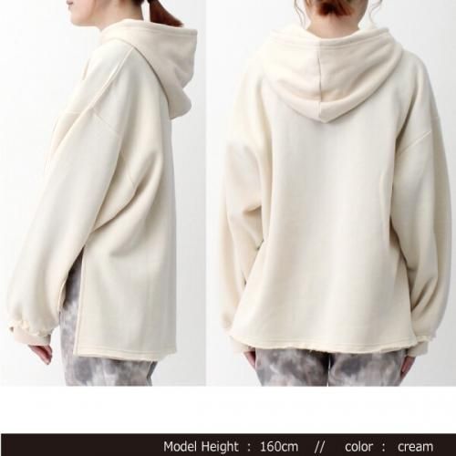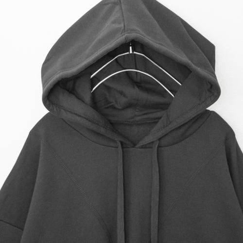 カットオフ、サイドスリットのシンプルフーディ。