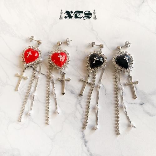 XTS クロスハート チェーン ピアス Silver/Red TS0221[SALE]