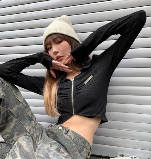 メタルプレートシャーリングリブトップス BLACK[SALE]
