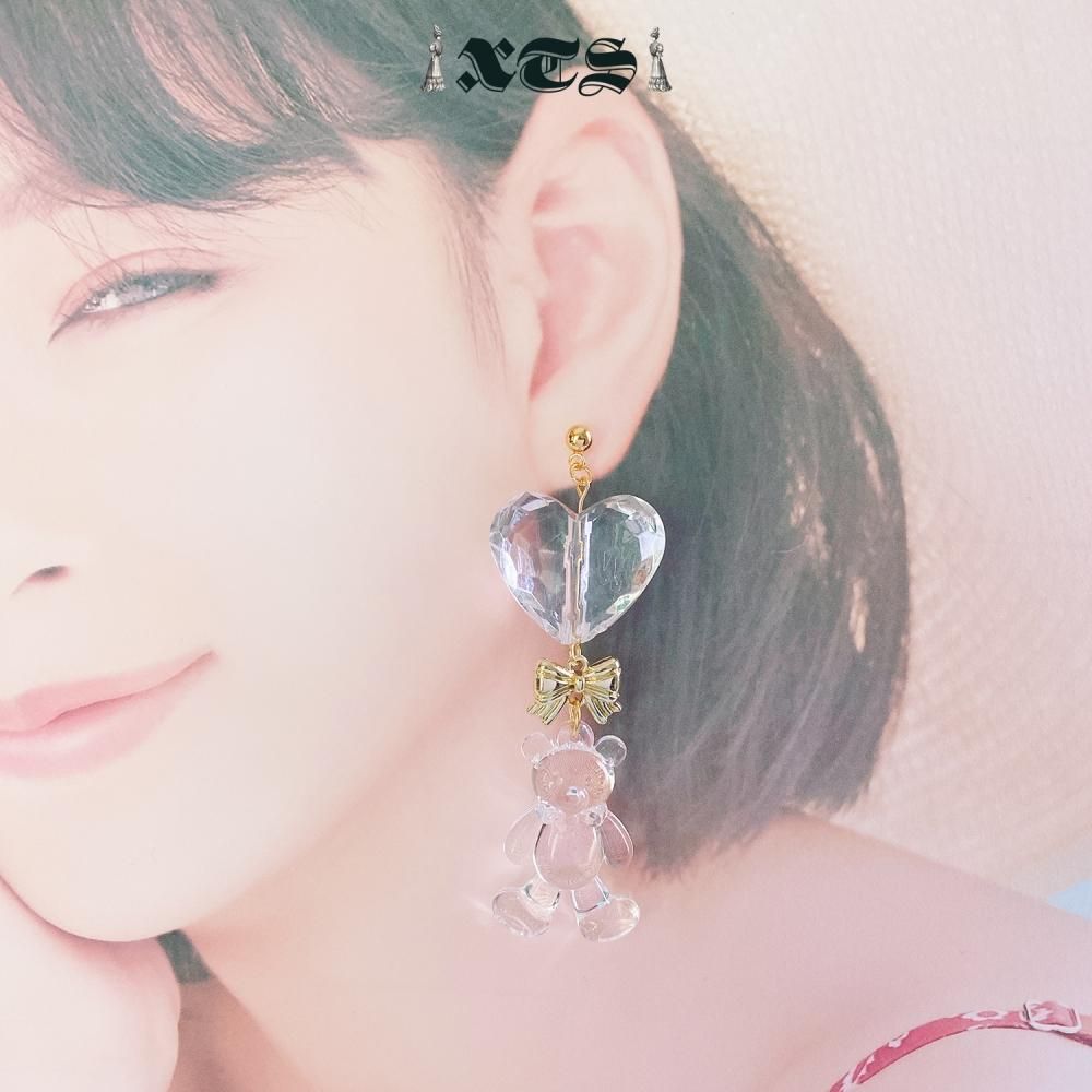 クリアのハートとクマの大ぶりピアス。
