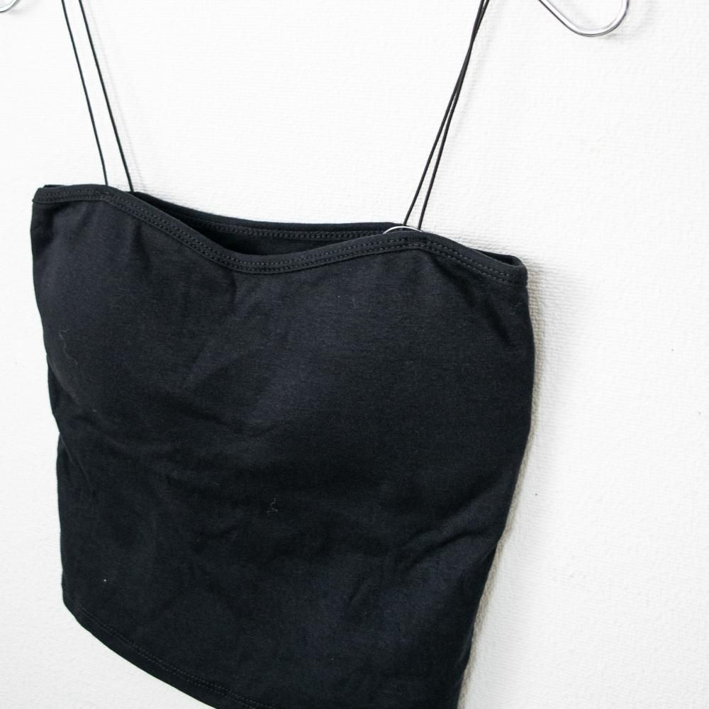 シンプルなデザインでスパゲッティショルダーのカップ付きブラトップ。