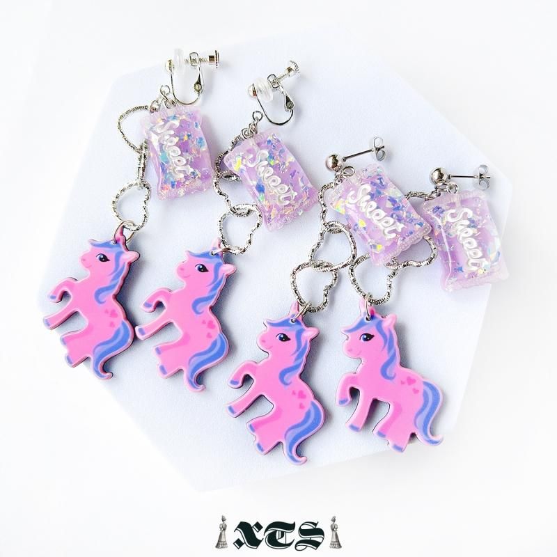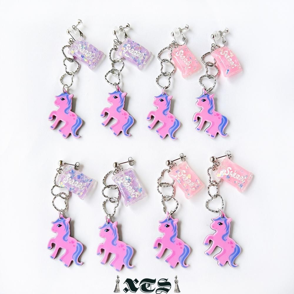 ハートチェーンにスイーツキャンディモチーフチャームとポニーが組み合わされたキュートなアイテム。