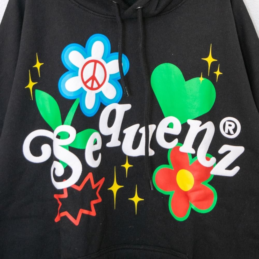 SEQUENZ フラワー 発泡プリント パーカー フーディー BLACK