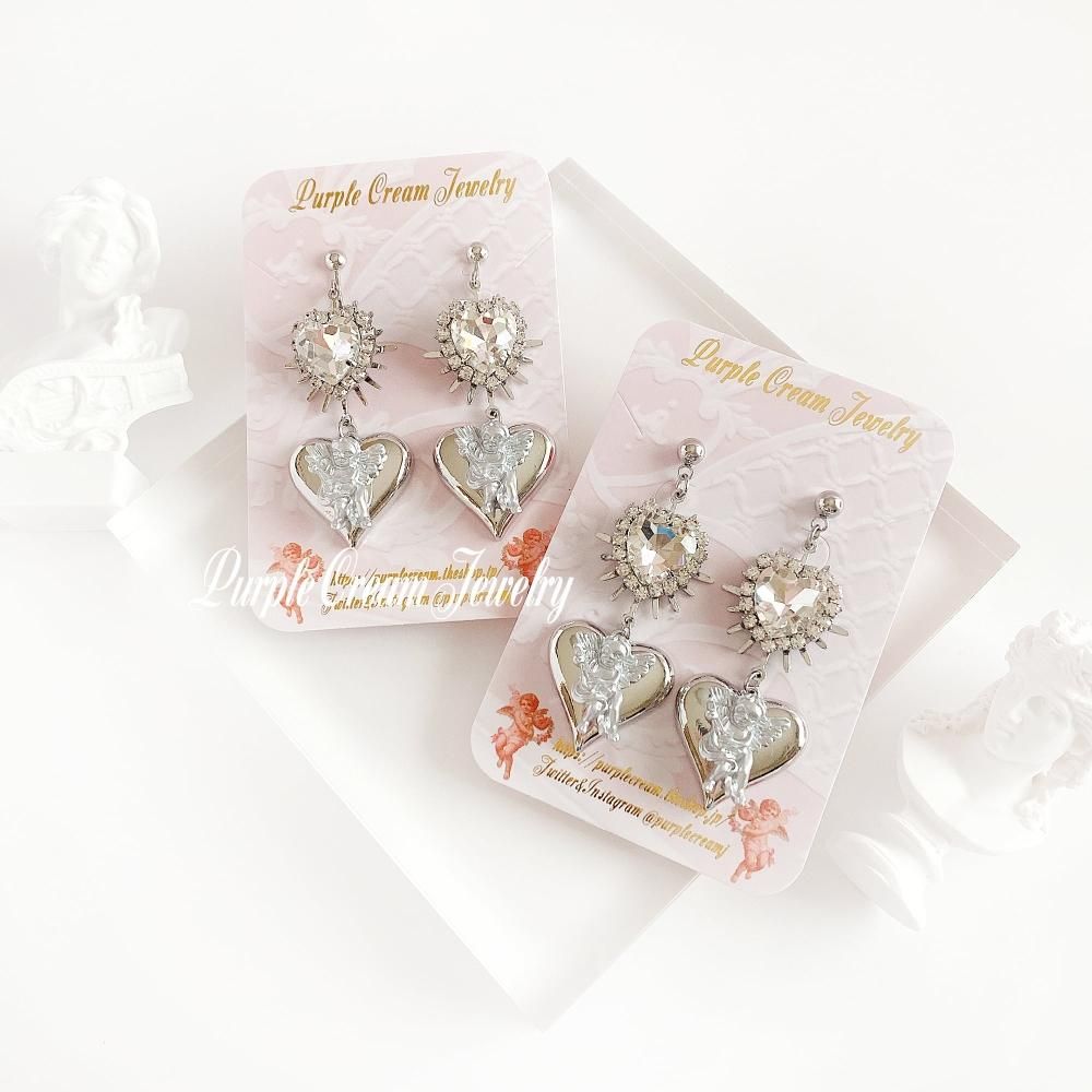 Purple Cream シルバーハートエンジェルピアス・イヤリング P1170[SALE]