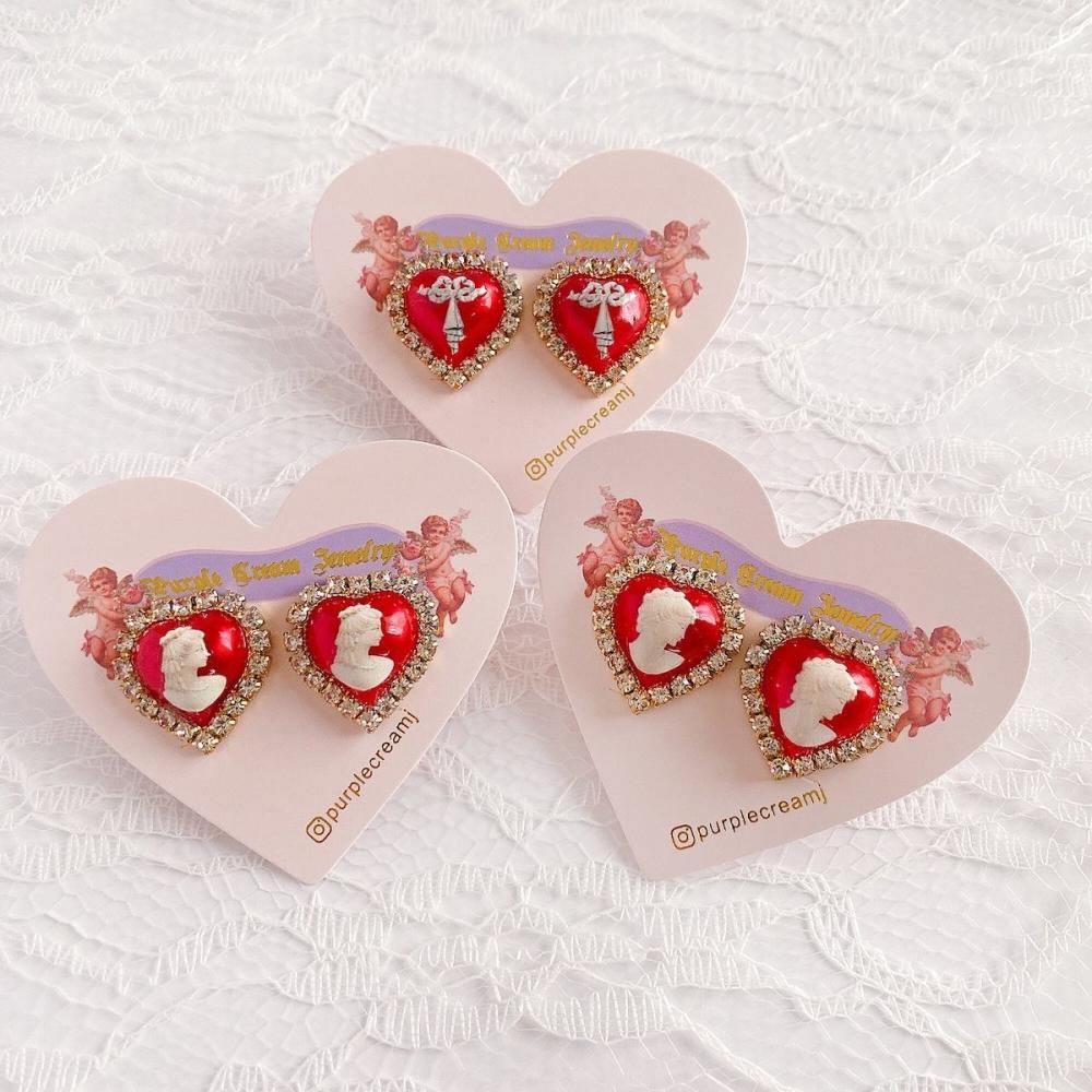 Purple Cream カメオハートピアス レッド P943[SALE]