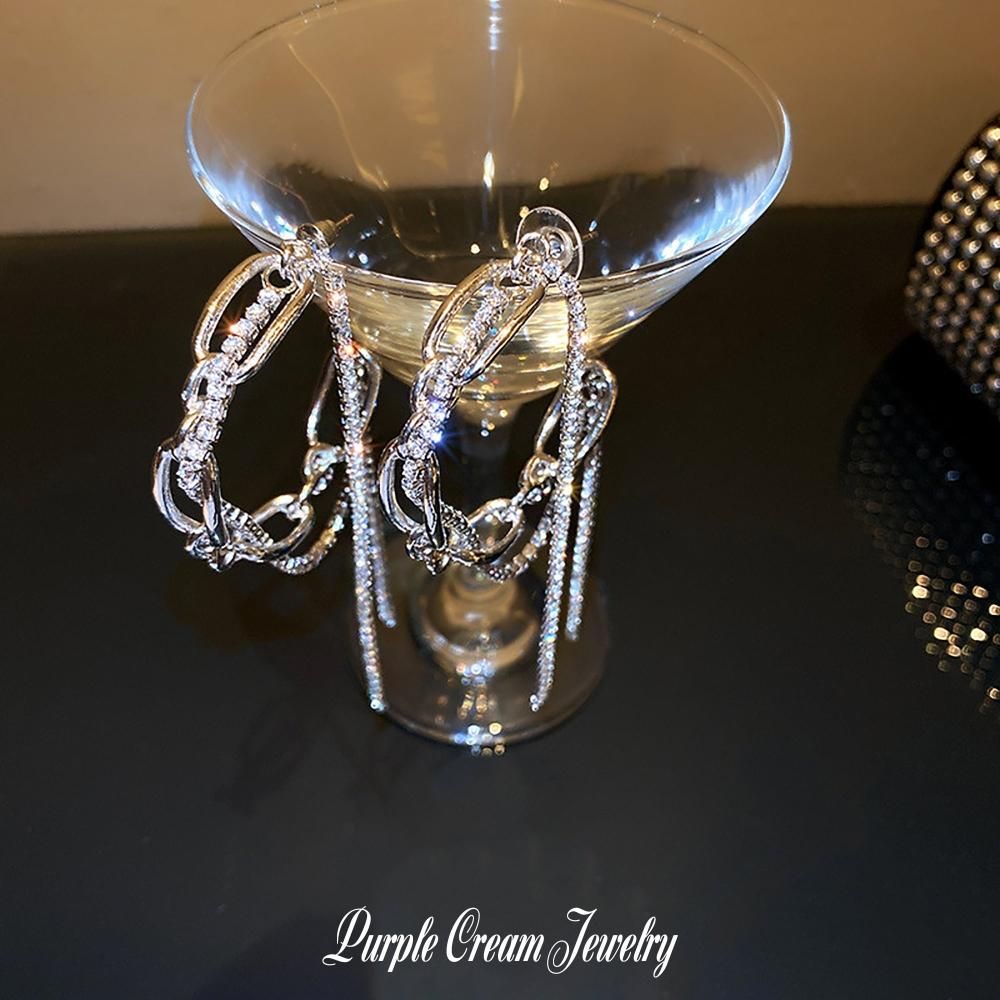 Purple Cream ストーンチェーンフープピアス P1237[SALE]