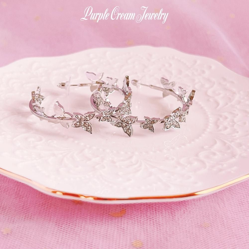 ラインストーンがたっぷりキラキラ輝くバタフライモチーフのフープピアス♪