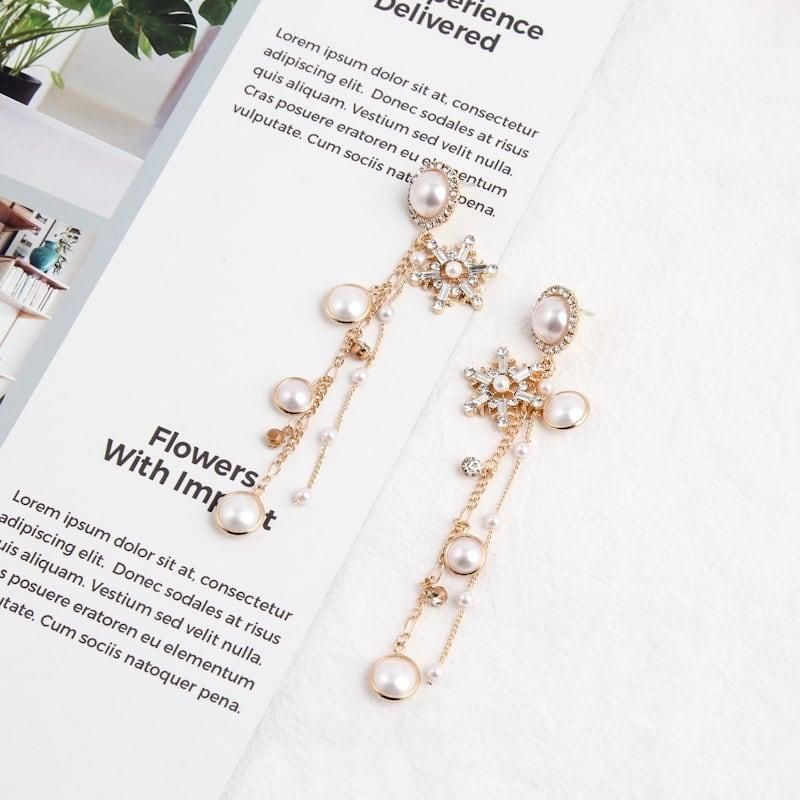 Purple Cream パール×クリスタルスノーピアス P053[SALE]