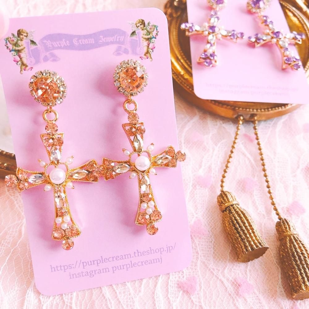 Purple Cream ラインストーンクロスピアス P038[SALE]