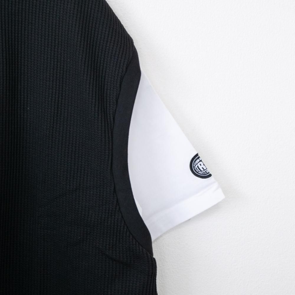 ワッフル生地のベストとインナーTシャツのアンサンブル。