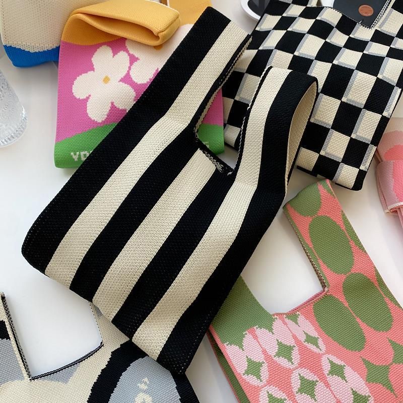 持つだけでコーディネートのワンポイントになるニットバッグ。