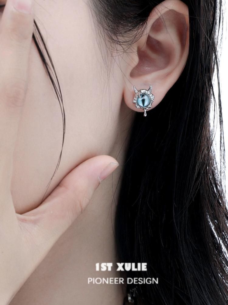 EVIL MONSTER カボション スタッドピアス SILVER BLUE [SALE]