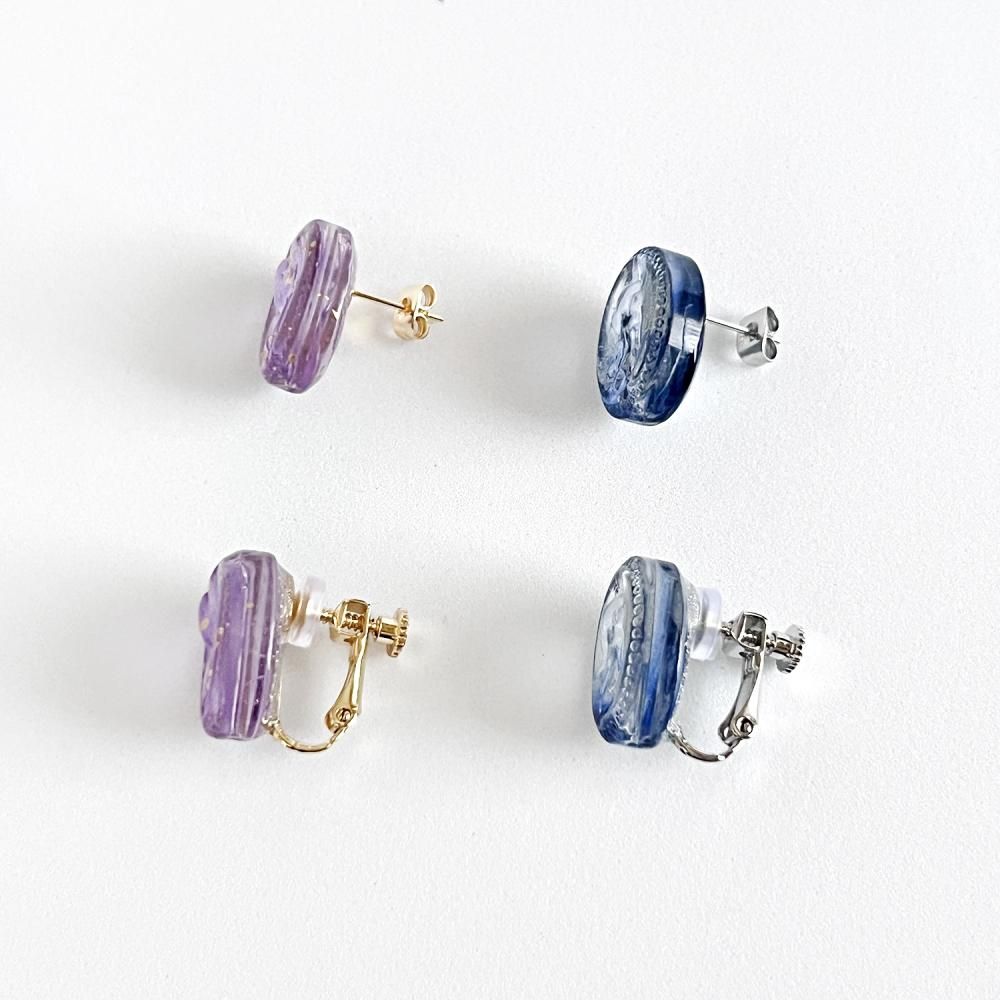 レトロなボタン風ビーズのピアス・イヤリング。
