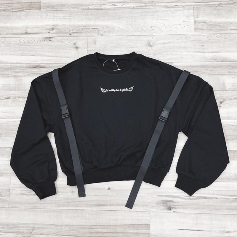 ショルダー ベルト サスペンダー付き 裏毛 スウェット ショートトップ BLACK[SALE]