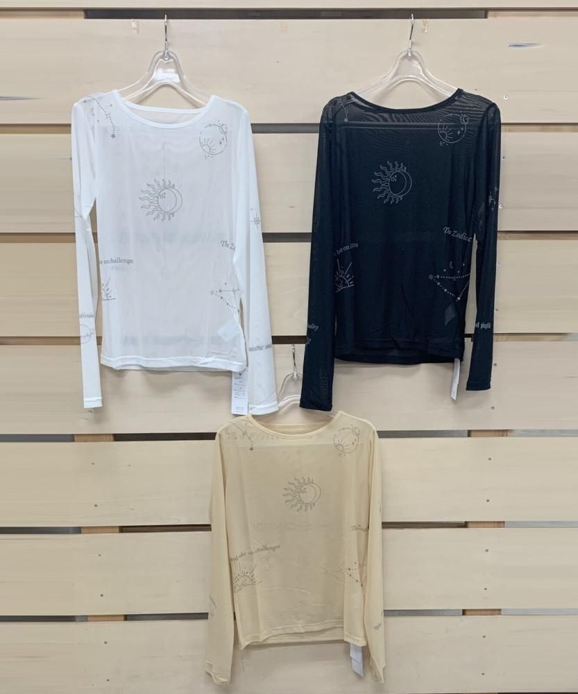 タトゥーのような星座や月など天体モチーフのプリントがポイント。