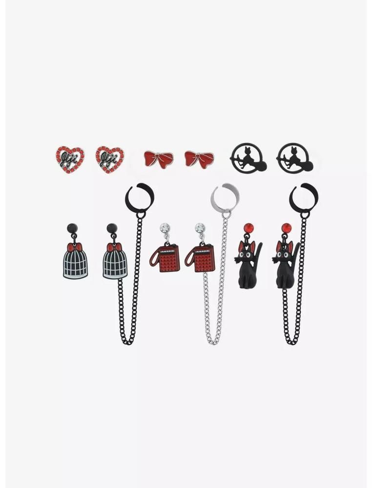 魔女の宅急便のアイコンと付属のカフスが特徴的なスタッドピアスの3ペアセット。