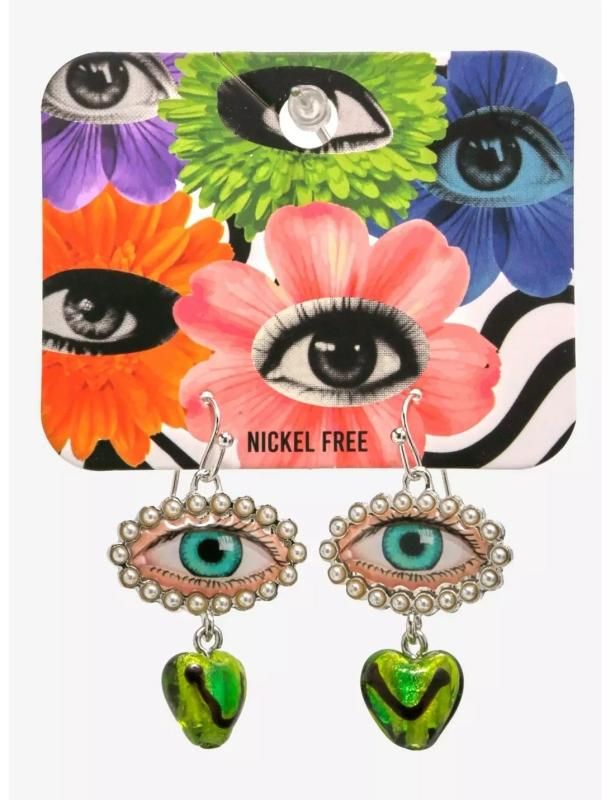真珠光沢のあるビーズで縁取られた目の絵と、その下にあるハート型のビーズが特徴です。
