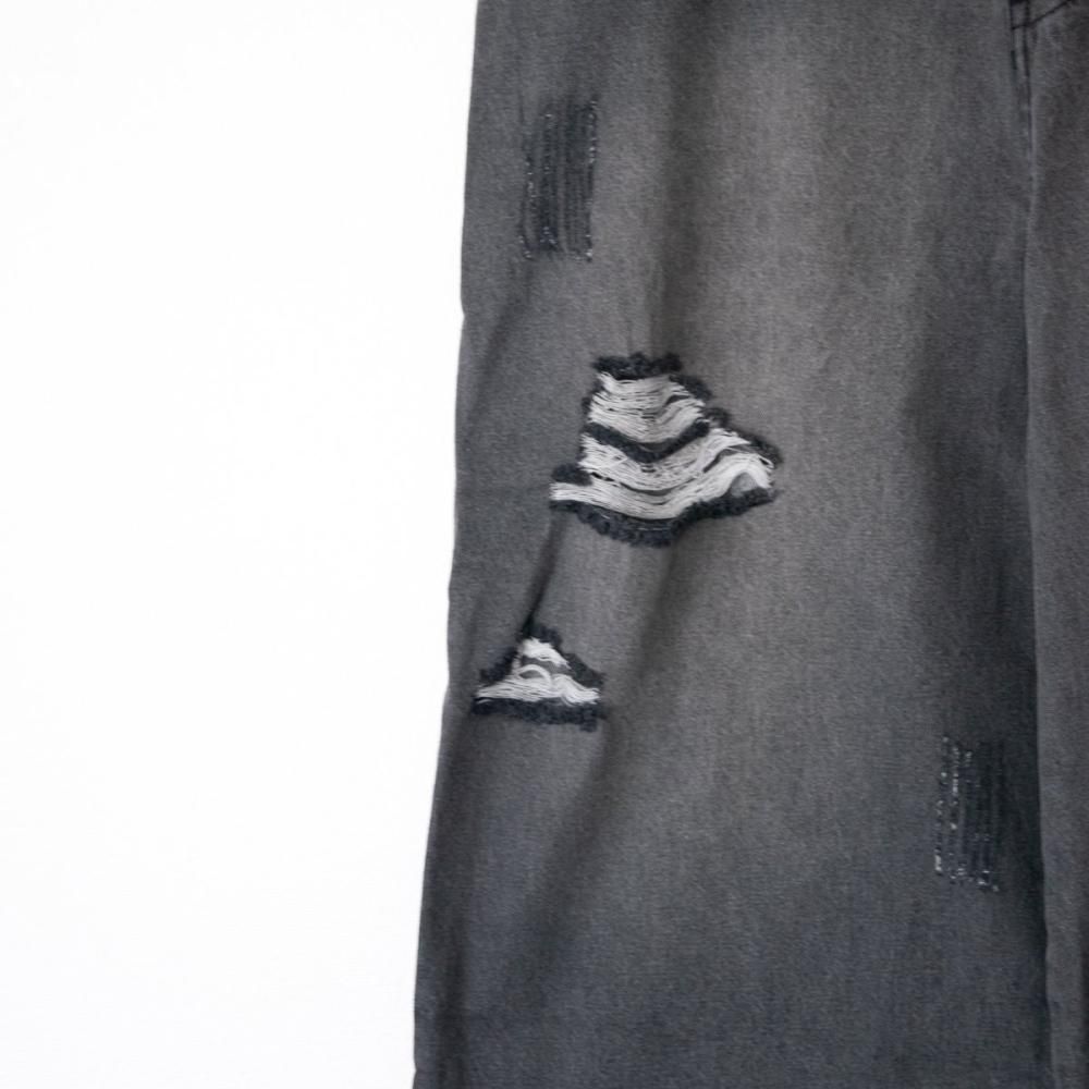 クラッシュデニムパンツ。