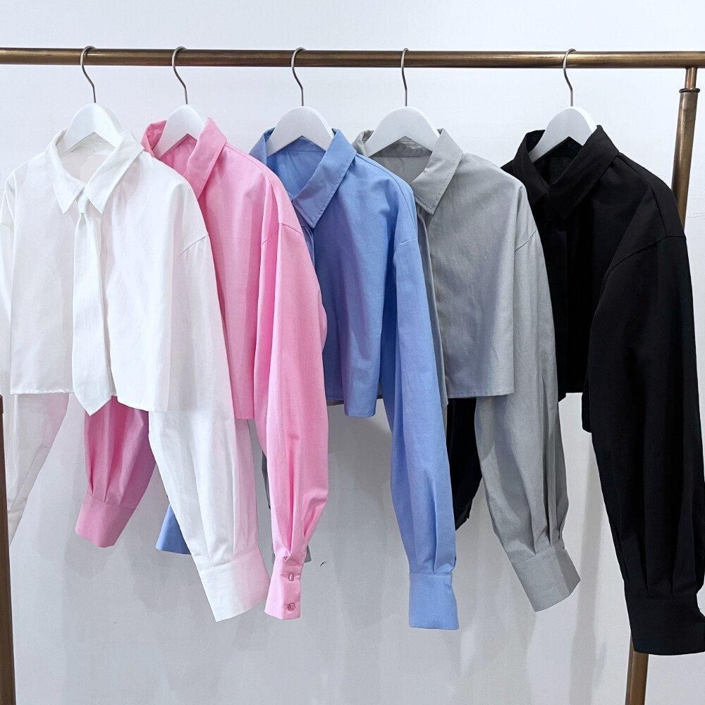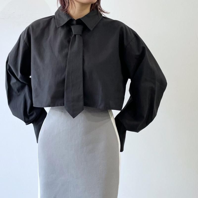 ブロードネクタイ付きショート丈シャツ BLACK[SALE]