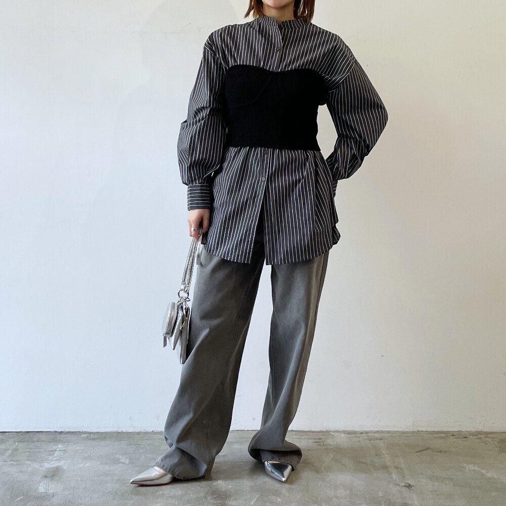 シャツやカットソーなど異素材でのレイヤードがおすすめ!