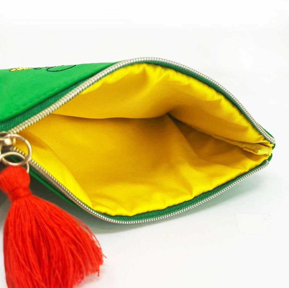 鮮やなグリーンの生地に赤いタッセルがポイント。