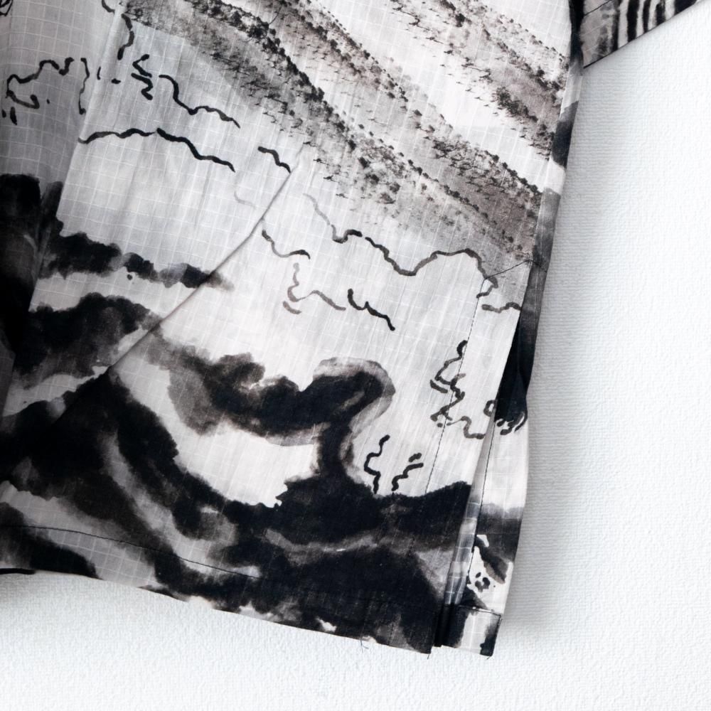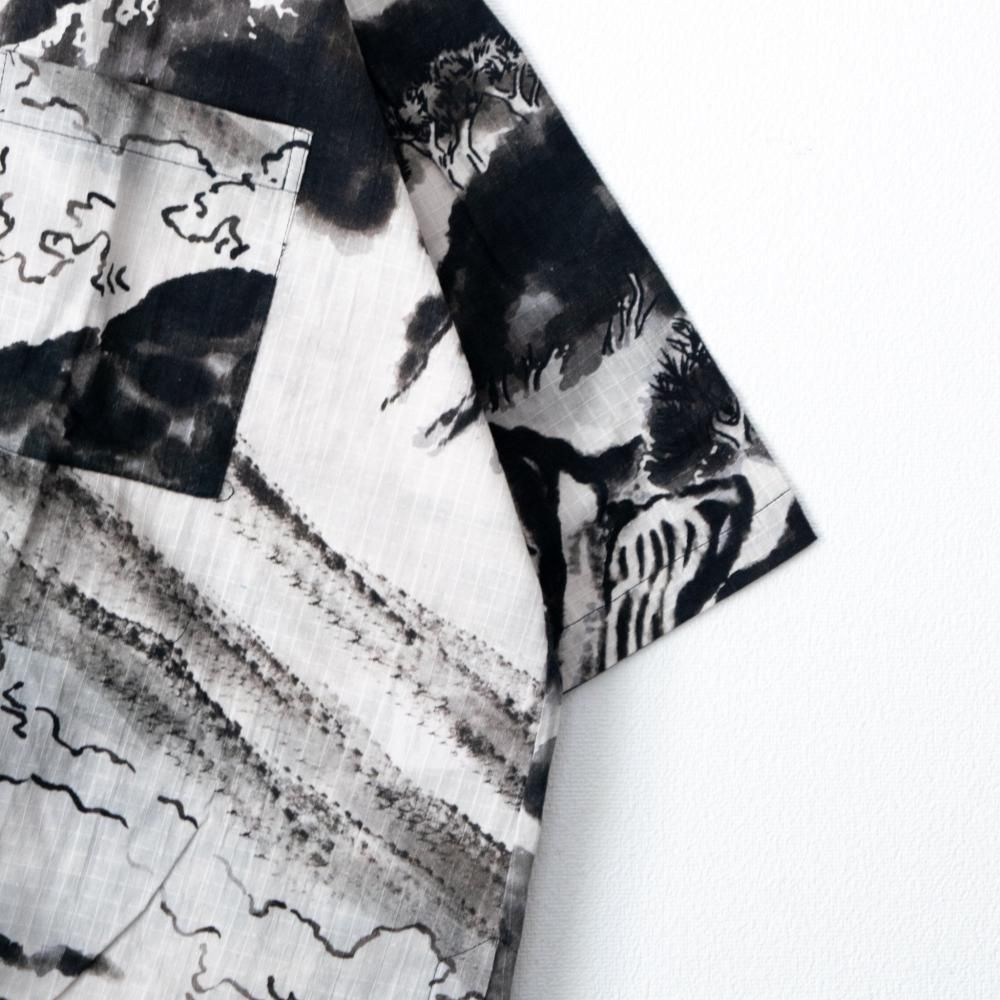 波がうねり、波立つ様子を大胆にデザインした開襟シャツ。