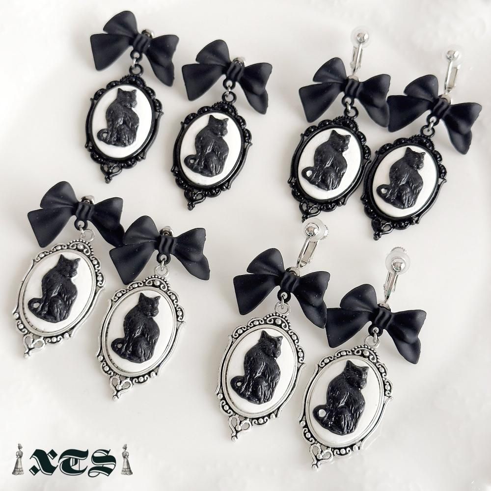 XTS Cat Silhouette Cameo ネコ ピアス イヤリング TS0307 SILVER[SALE]