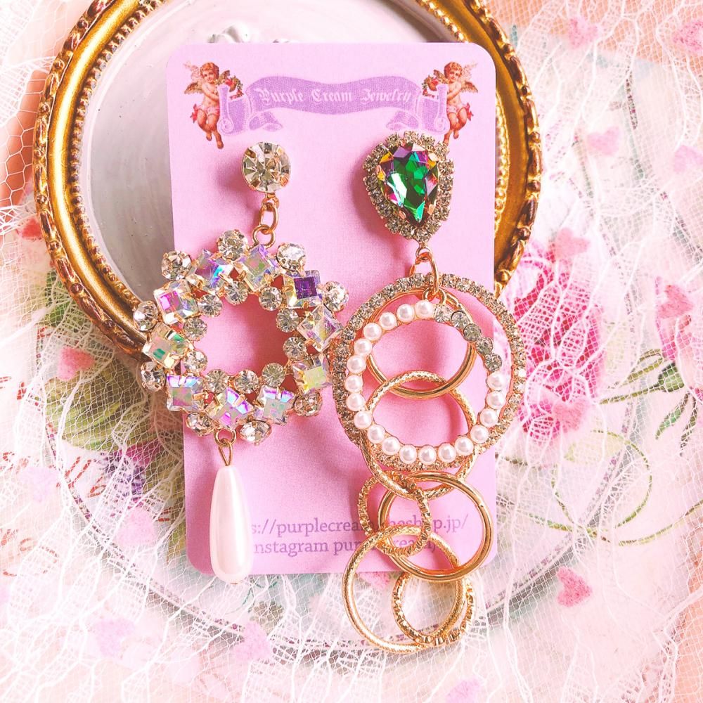Purple Cream P442 ビジュー リング ピアス[SALE]
