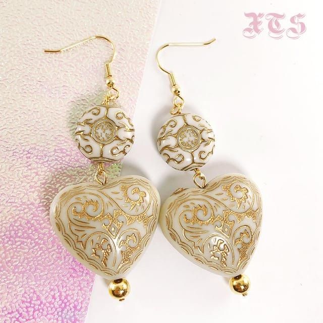 XTS ビッグハート レトロ イヤリング ピアス WHITE[SALE]