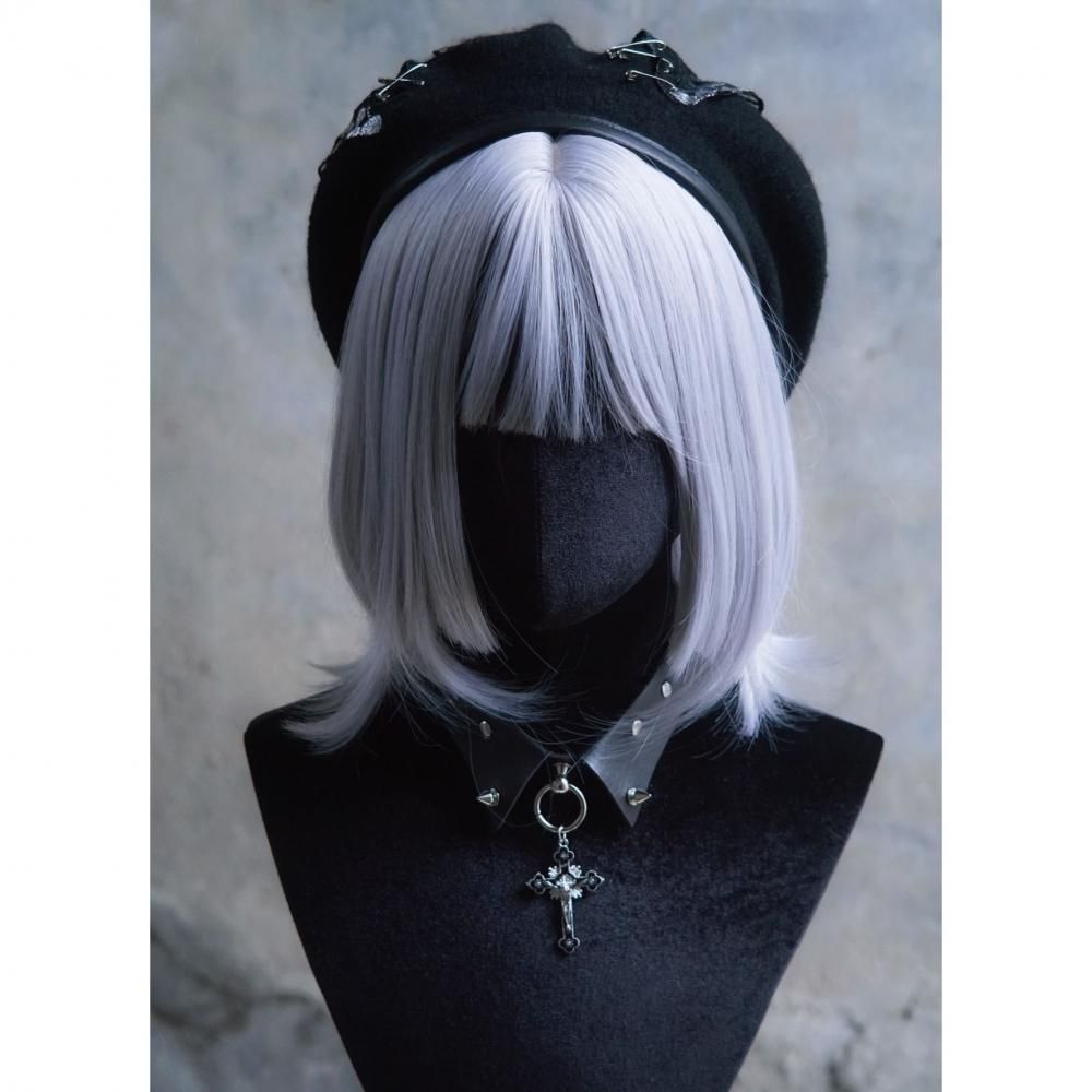 レースの蝶々と安全ピンでゴシックな雰囲気が魅力のデザイン。