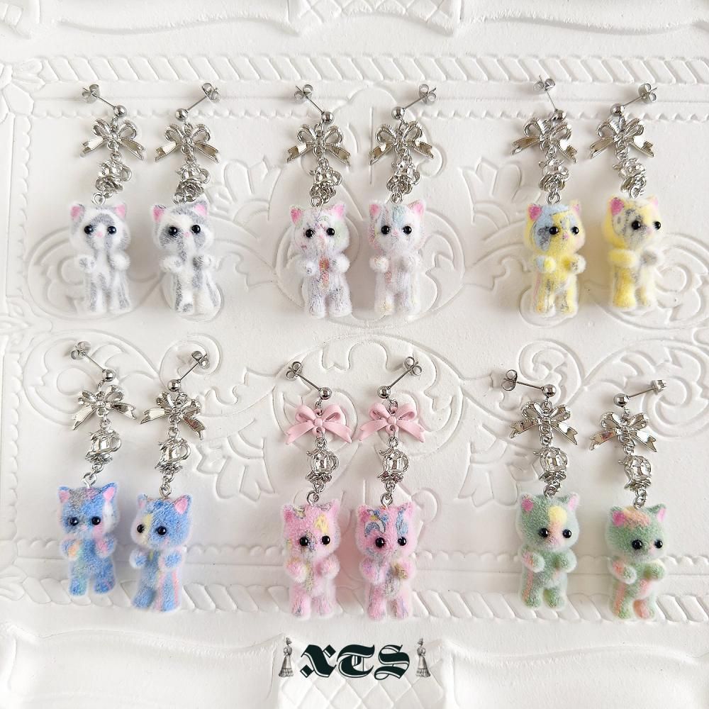 フロッキー加工がされたふわふわとした猫モチーフのデザインアクセサリー。