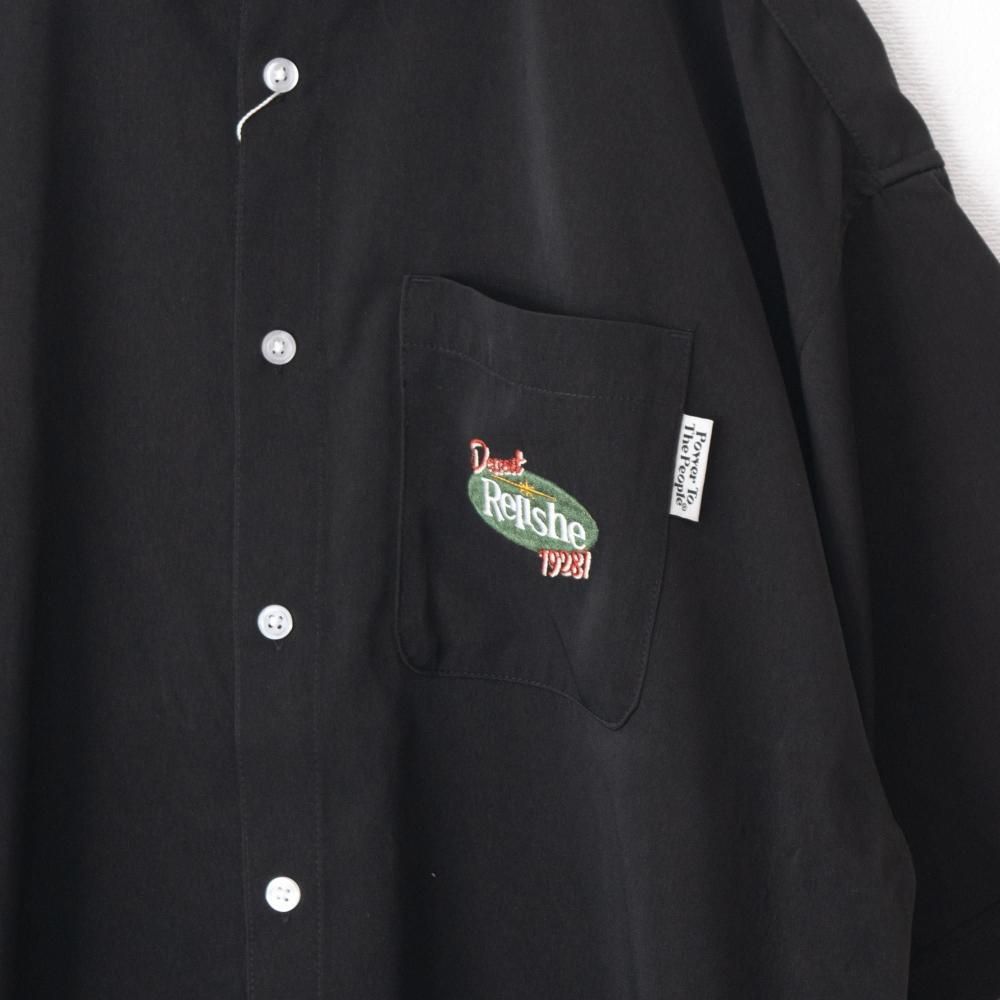 POWER TO THE PEOPLE クリームソーダ 刺繍 半袖シャツ BLACK