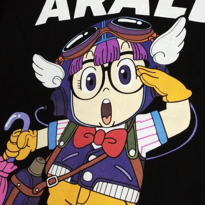 アラレちゃんのイラストが懐かしくて可愛いドクタースランププリントTシャツ。
