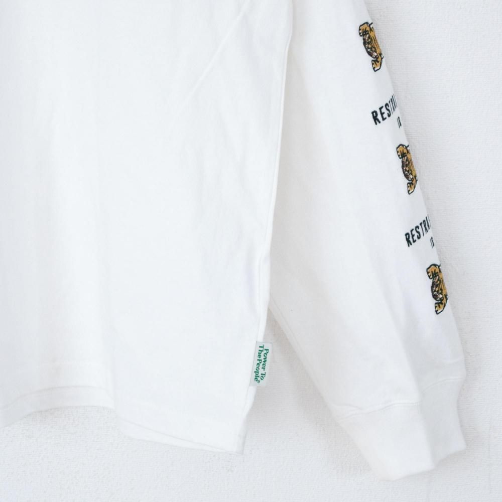 POWER TO THE PEOPLE TIGER 袖刺繍 ロンT WHITE