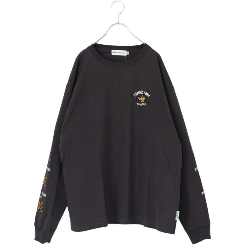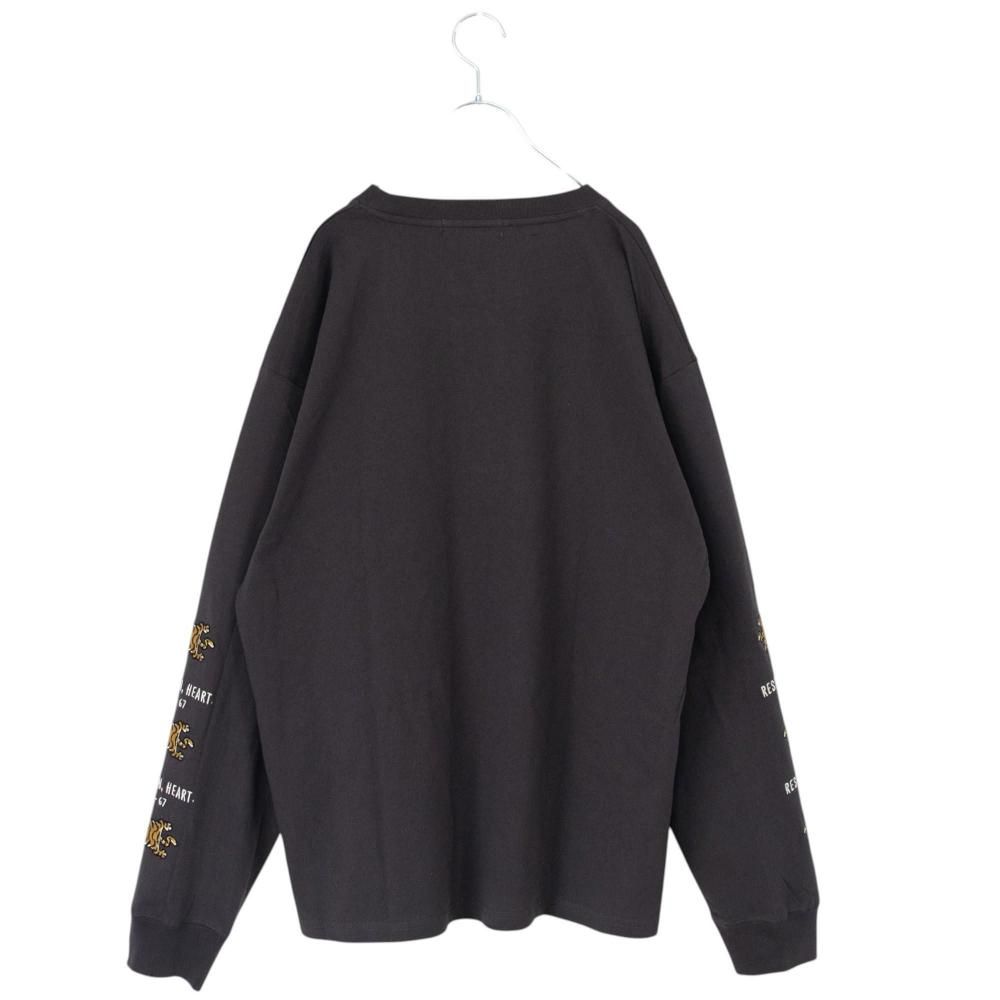 POWER TO THE PEOPLE TIGER 袖刺繍 ロンT CHARCOAL