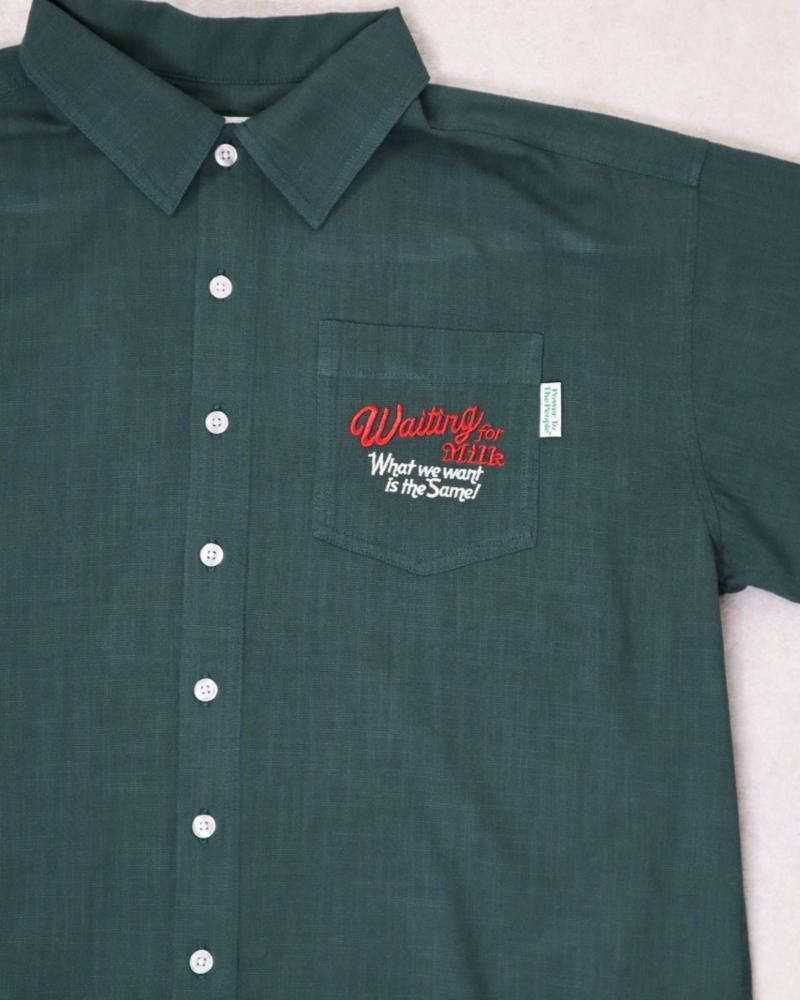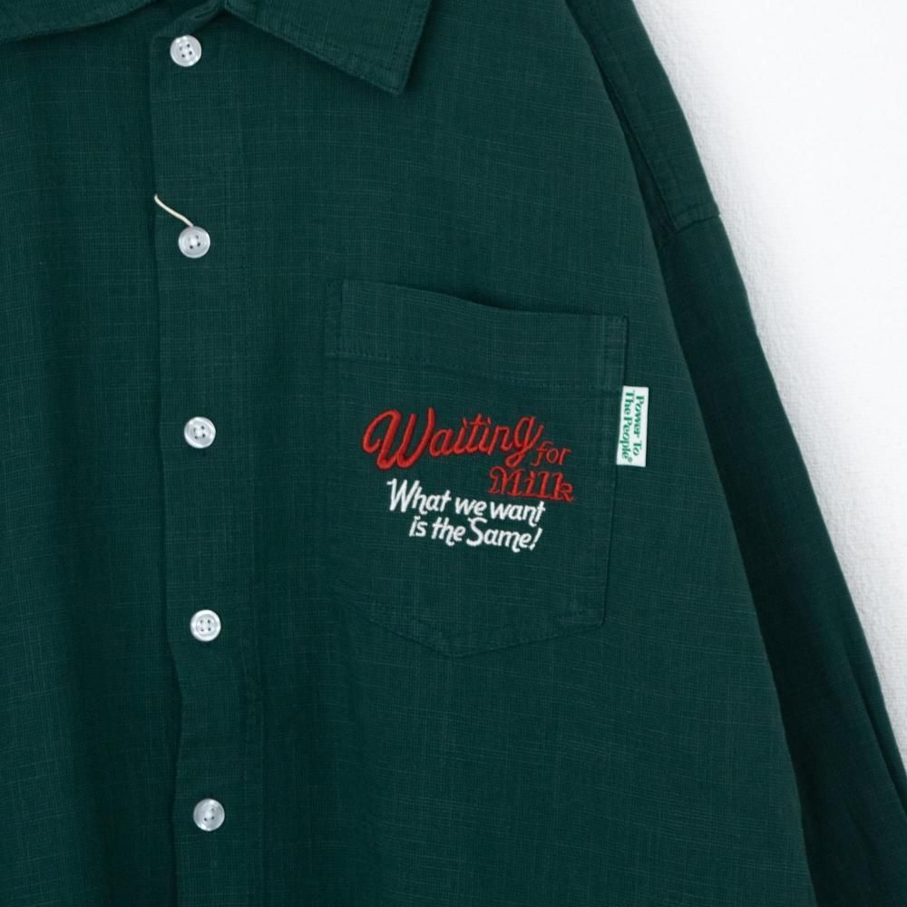 POWER TO THE PEOPLE CAT 麻ライク 刺繍 シャツ GREEN