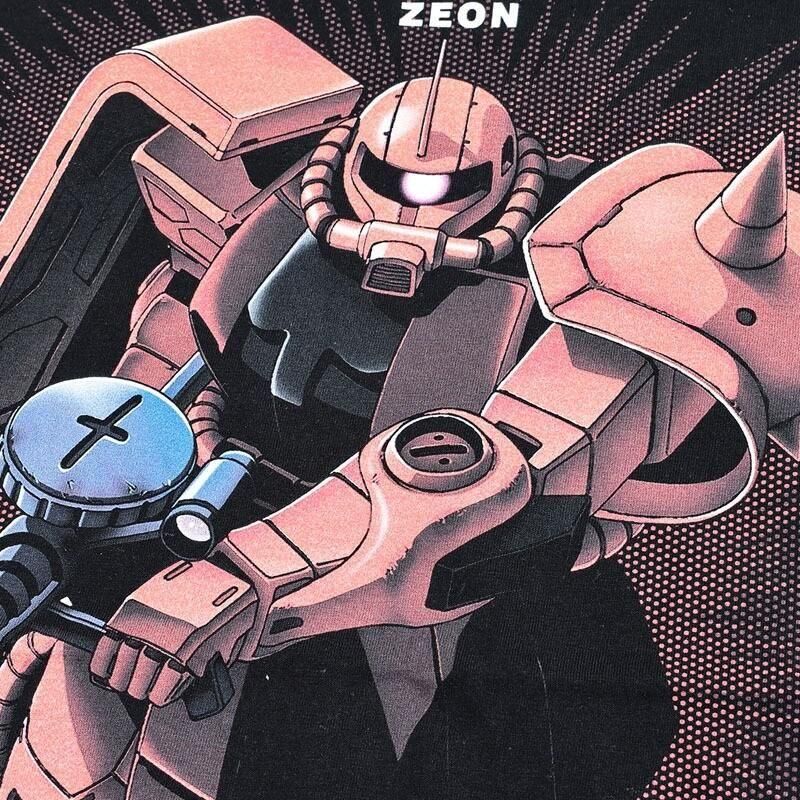 真っ赤な機体のシャア専用ザクをプリントしたTシャツ。
