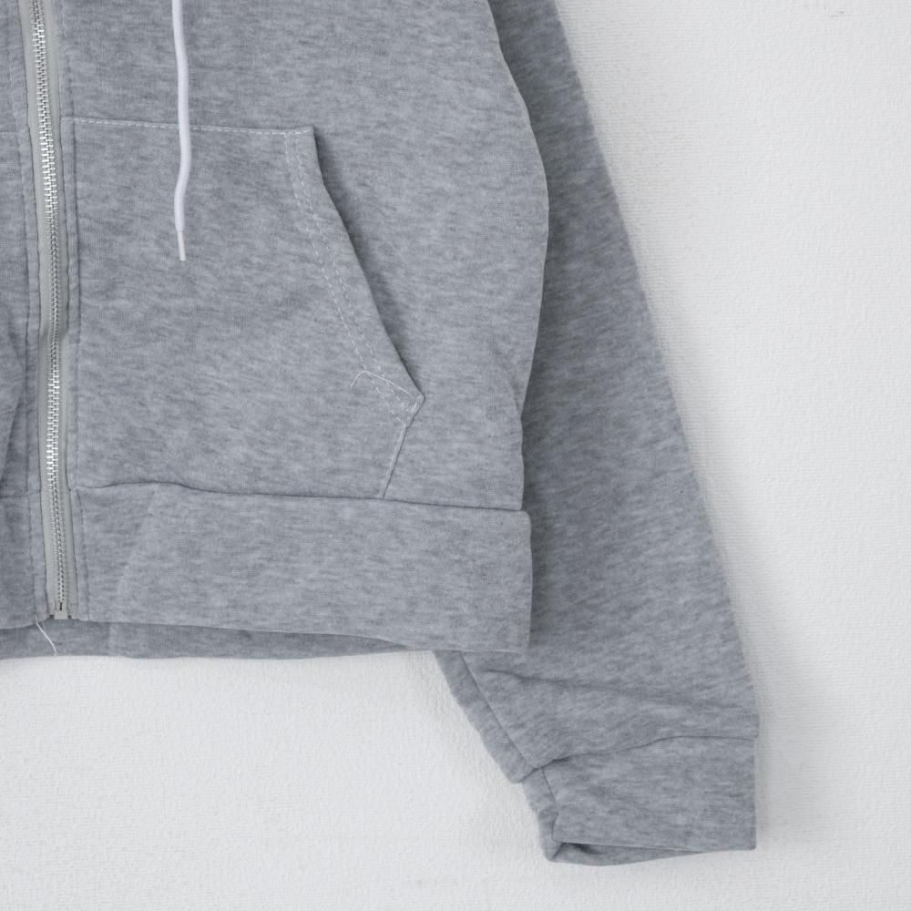 B品 裏起毛 ライト素材 ショート丈 ジップアップ パーカーGRAY