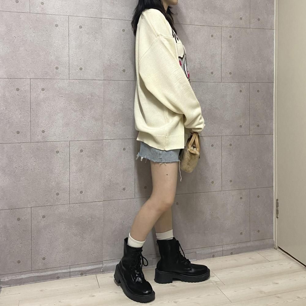 Y2Kブームやエモキャラブームも追い風となり、リバイバルヒット中のエンジェルブルー。ポップでカラフルな世界観はジャガードニットでも存在感抜群。