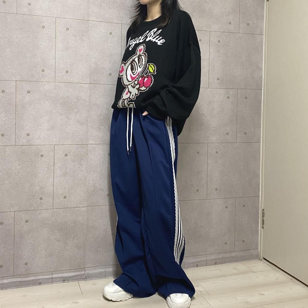 Y2Kブームやエモキャラブームも追い風となり、リバイバルヒット中のエンジェルブルー。ポップでカラフルな世界観はジャガードニットでも存在感抜群。