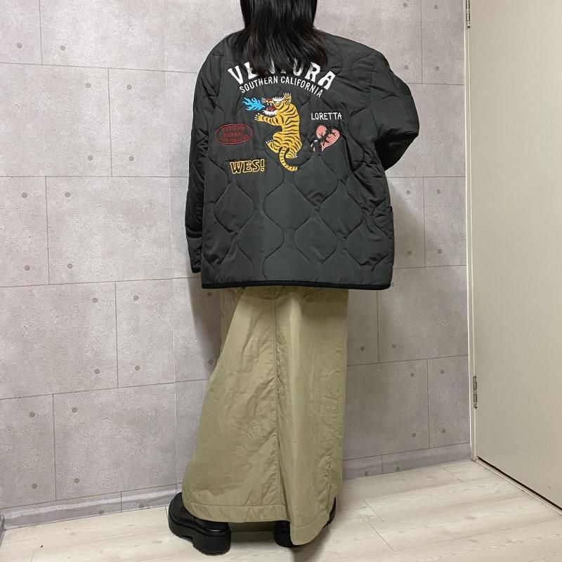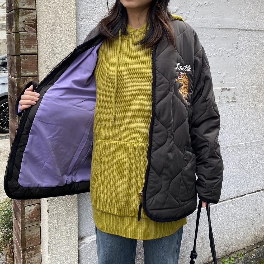 スーベニア刺繍 配色カラー 裏地 中綿キルティング ジャケット BLACK