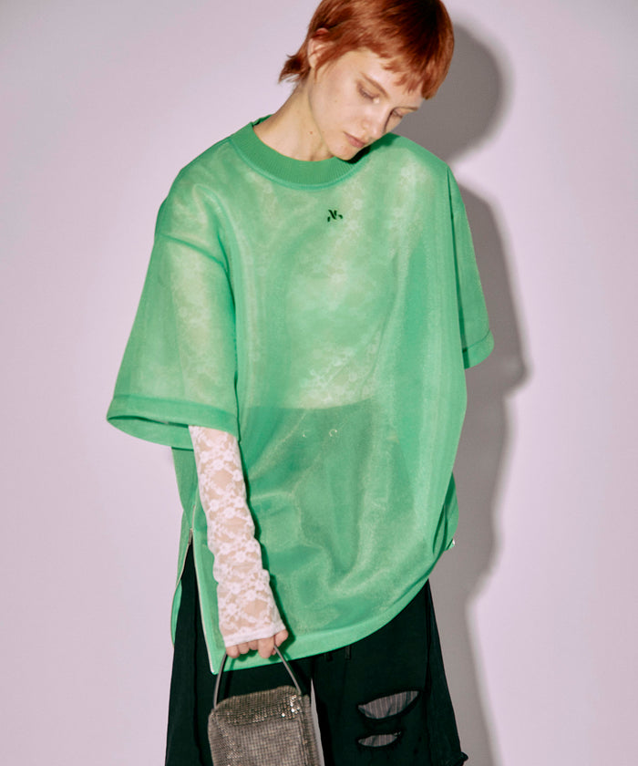 シースルーのトップスなら、上から半袖Tシャツを重ねるのがオススメ!ワンピースの場合は下にTシャツを着るとトレンドらしいコーデになります✨