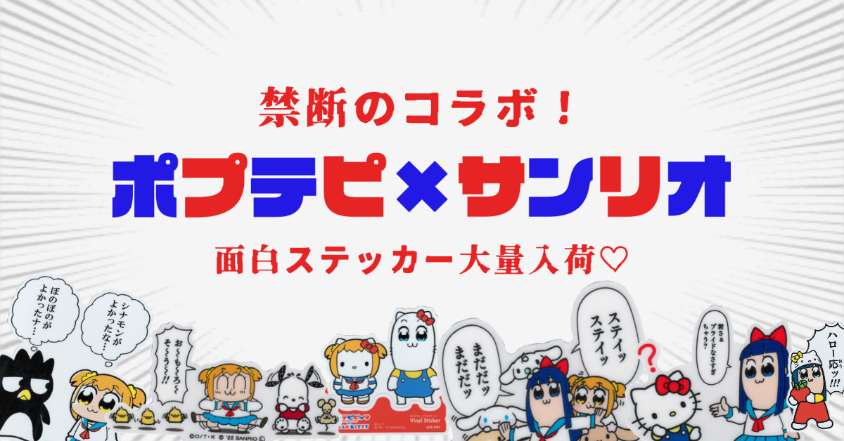 車やスマホに!新作【ポプテピ×サンリオ】ステッカー大量紹介!
